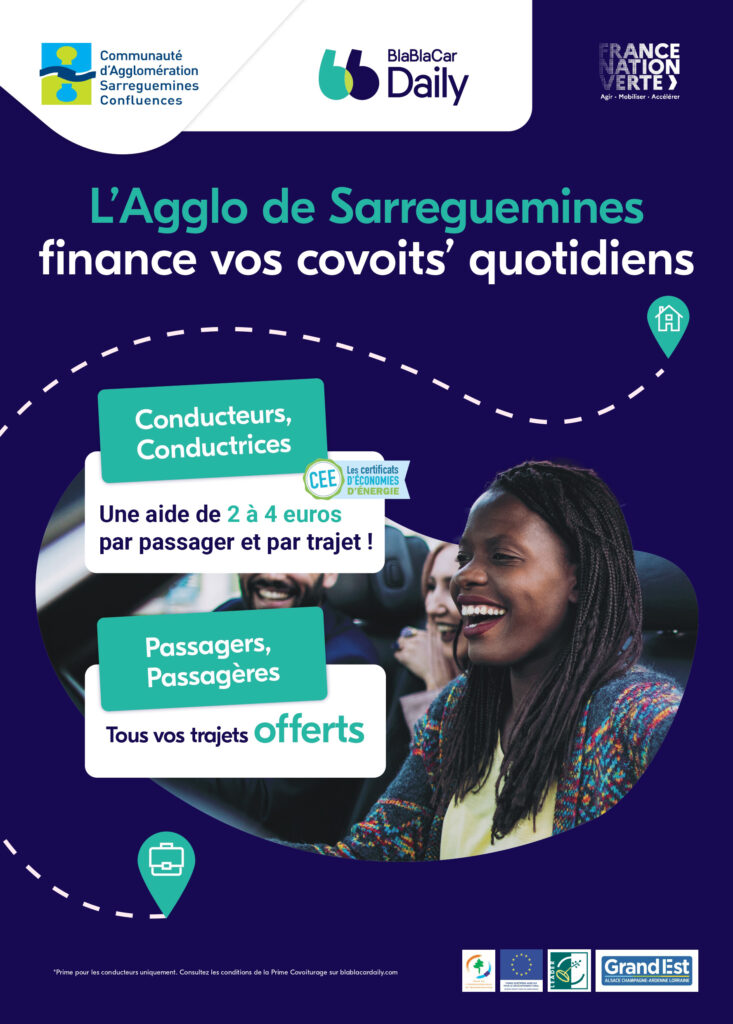 Seuls les trajets en covoiturage réalisés sur l’application BlaBlaCar Daily avec, pour origine ou destination l’une des communes de l’Agglo, bénéficieront d’une incitation financière de la part de l’Agglo. Celle-ci est entièrement gérée par l’application BlaBlaCar Daily.