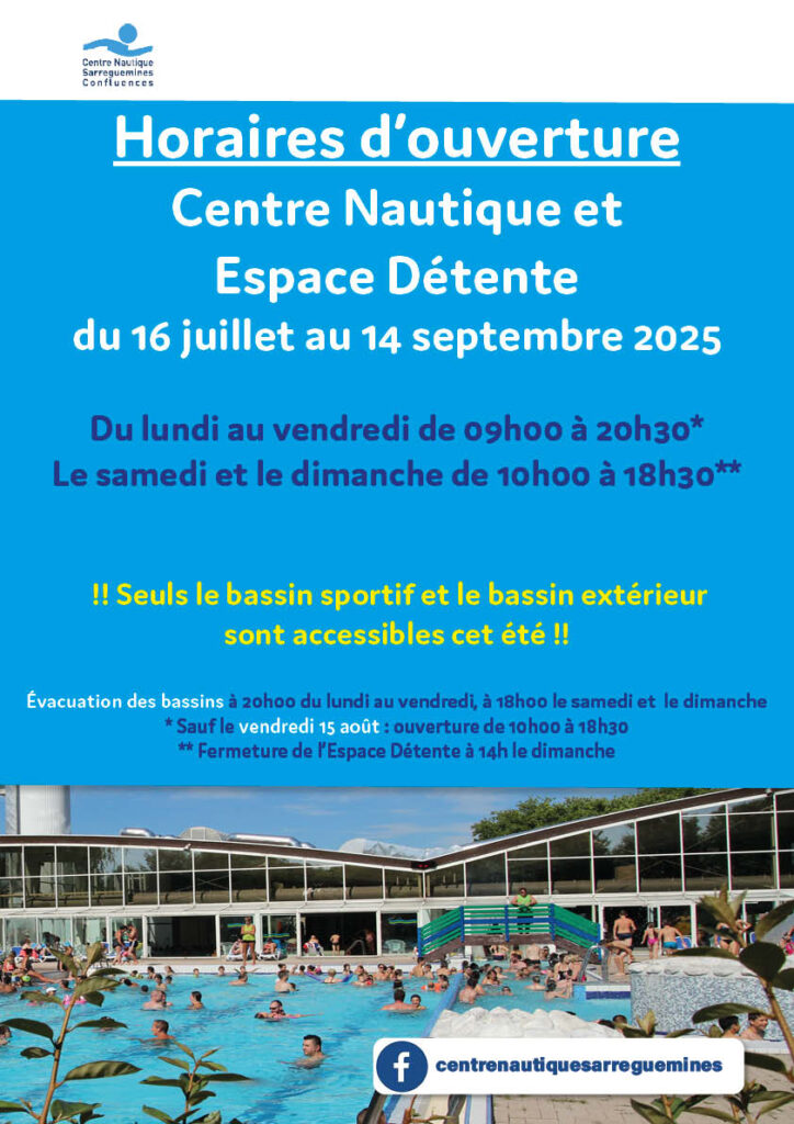 HORAIRES D’OUVERTURE DU CENTRE NAUTIQUE DU 16 JUILLET AU 14 SEPTEMBRE